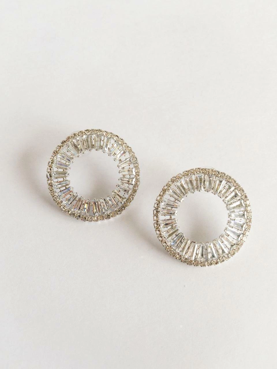 Par de Brincos Círculo Brilhante Bijuteria Prata - Destaque, Glamour e Luminosidade para Suas Orelhas!
